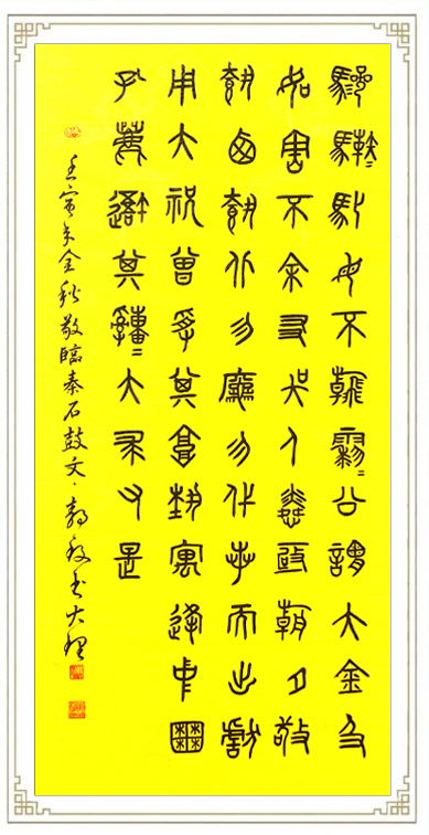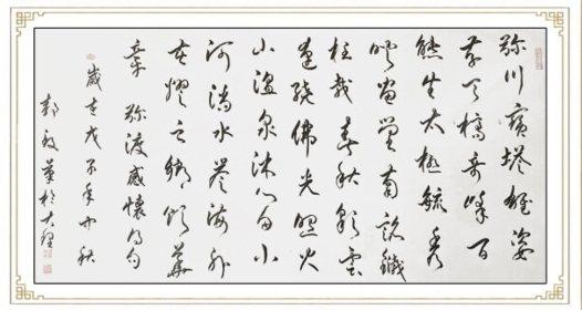 观崔海权先生的作品其色,其形,其浓淡枯湿,其断连辗转,粗细藏露皆变数无穷,气象万千。字形正倚交错,大大小小,开开合合,线条粗细变化明显,跌宕有致。既有性情又不失法度,线条纯净,意趣高妙,字如其人。笔法精湛写正宗,天工才华书丰神,非常恰情合意地融进个人书法修养,成就了独特的个人书法风格。先生的书法,既然有师前贤的笔墨正路,也有自得之的自有才华,所以笔法师古韵,可见书法线条孤蓬自振的奋发之相。