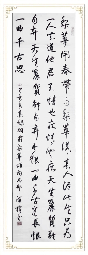 崔海权先生的作品,深厚的书法理论基础,良好的汉字书写功底,优秀的艺术道德境界和艺术风格皆体现出来。诸体皆能,从笔法、用墨、章法布局来看疏密得体,浓淡相容,笔力遒劲,疏密得适,作品极具收藏价值书法风格。
