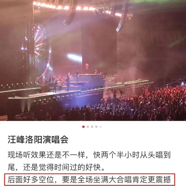 而汪峰在洛阳的演唱会只有最便宜的看台票售罄,甚至后来的长沙站、深圳站、呼和浩特站都是如此。