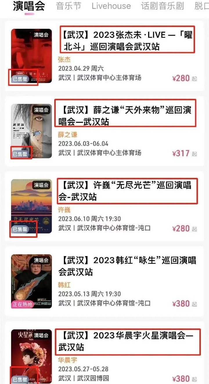 其他歌手演唱会的门票一票难求,张杰、薛之谦、华晨宇等人的门票几乎开售就被一抢而空。