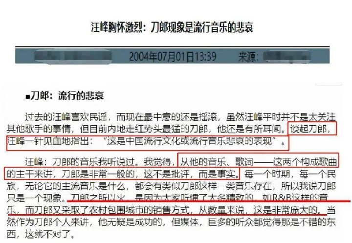 除此之外,汪峰曾经还有些“看不起”刀郎。